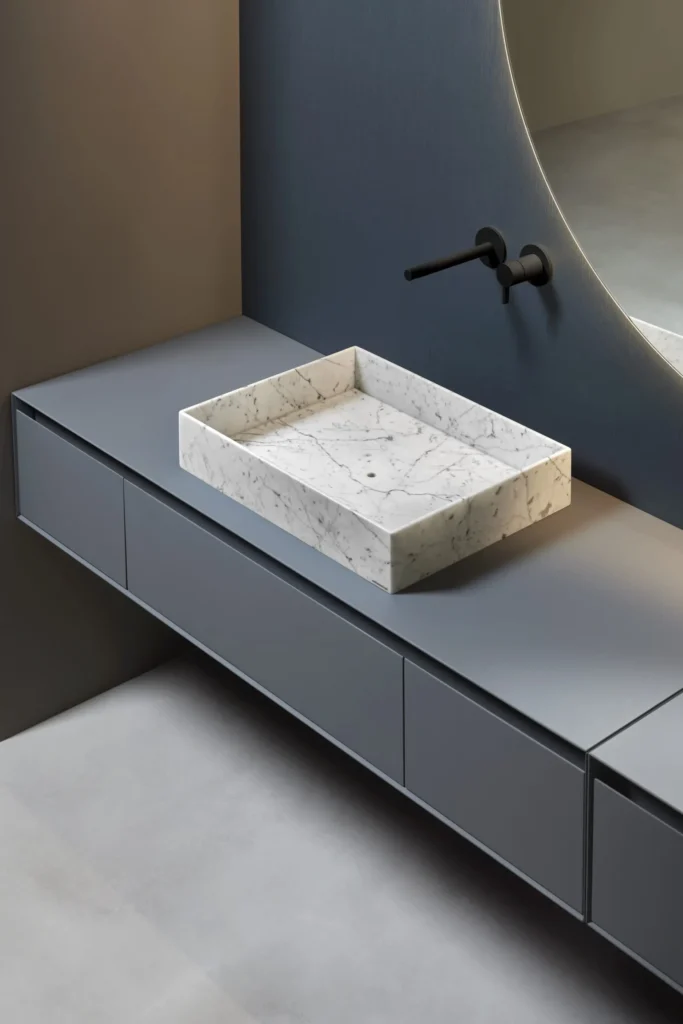 The Nabatei collection, designed by AL Studio, comprises three countertop basins, distinguished by their essentiality and precision in geometric forms. An essential sign that is enhanced by the uniqueness of the stone, the infinite chromatic shades, the unrepeatable variations of color. Due to these characteristics these washbasins are easy to match with all the brand’s furniture due to their versatility.