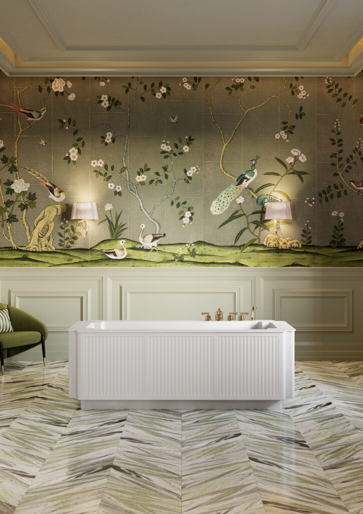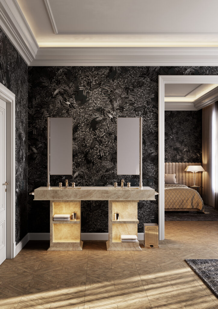 All created in Florence and inspired by the best international design of all time, Devon&Devon products reinterpret the Victorian Age, Romanticism, Art Deco, the Jazz Age, and La Dolce Vita with an eye on the present and the knowledge that they will be part of the future for a long time to come. That is why its classic-contemporary lines are characterized not only by exquisite marble and the finest porcelain but also by innovative and increasingly sustainable materials such as White Tec Plus, a Green Guard Gold-certified bio-based blend.